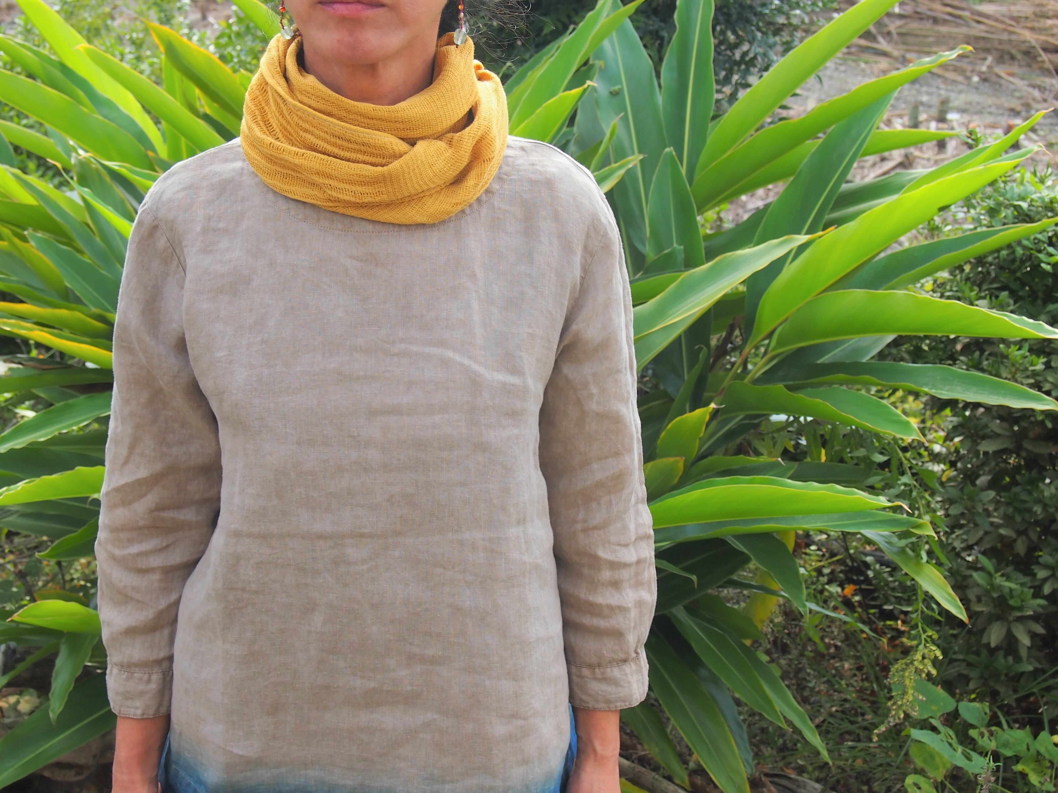 無農薬で栽培したマリーゴールドの花で鮮やかな黄色に染めました。