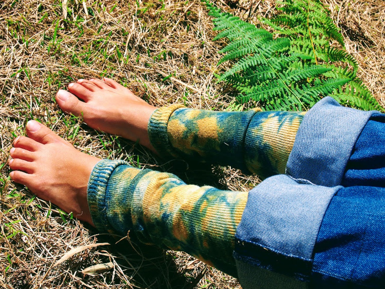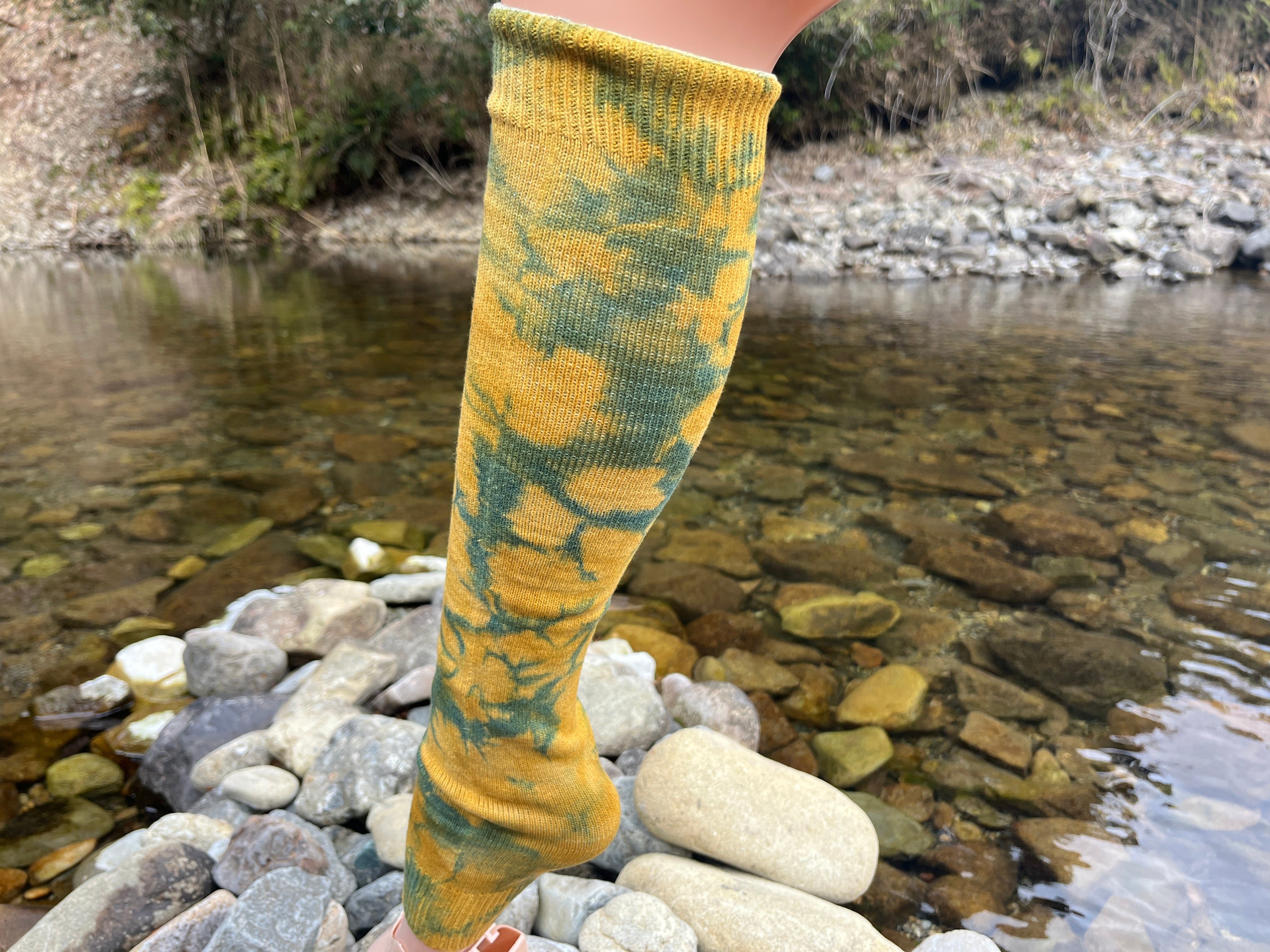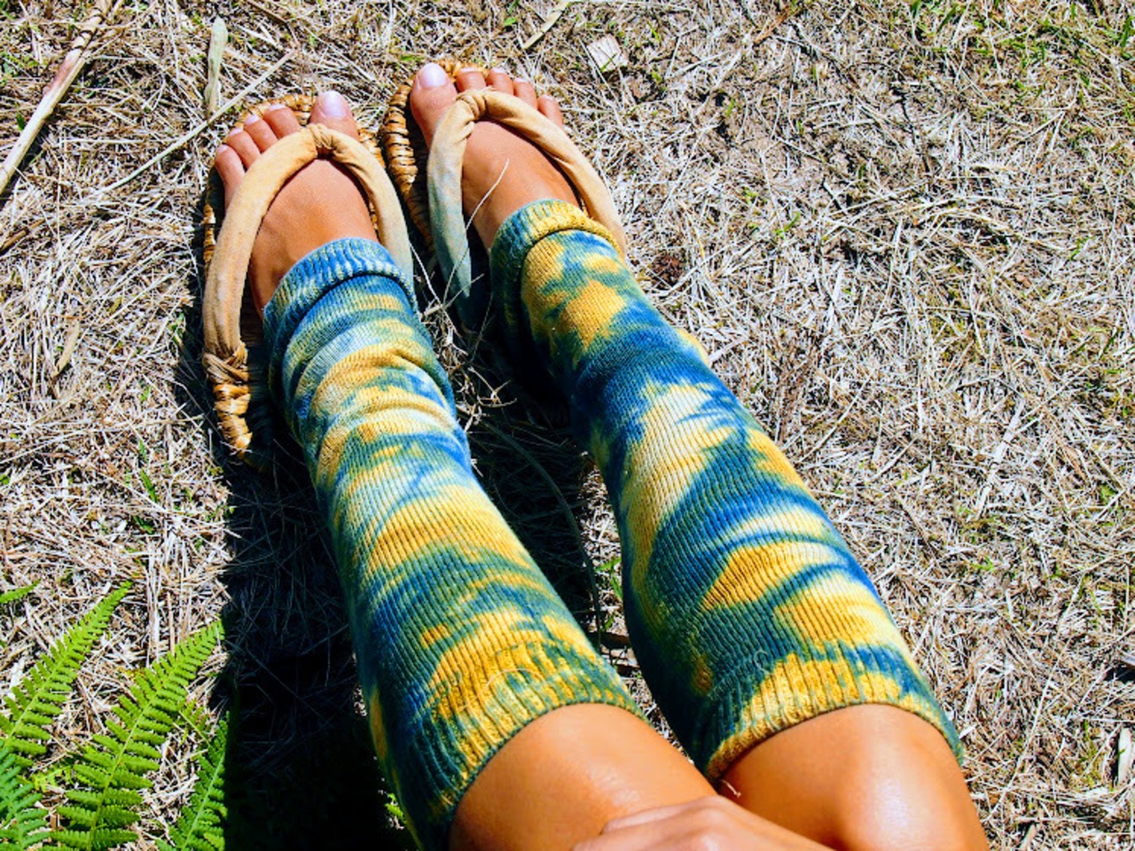 オシャレに温活! レッグウォーマー マリーゴールド染+藍染